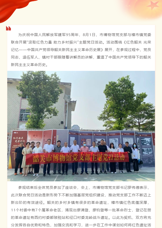市博物馆与樟市镇党委联合开展“汲取红色力量 助力乡村振兴”主题党日活动