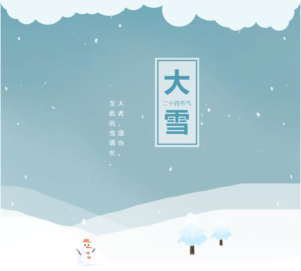 《月令七十二候集解》说:“大雪,十一月节,至此而雪盛也。”大雪相对于小雪来说,雪下得越来越多,气温越来越低,大地开始积雪。