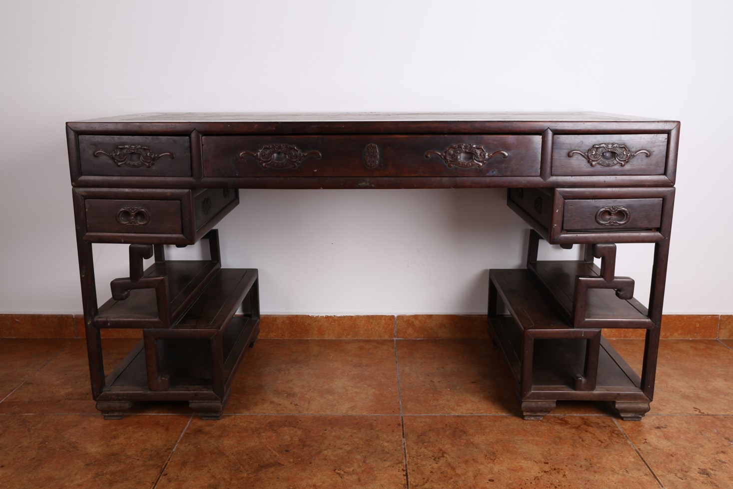 1922年韶关北伐大本营用剔地龙纹酸枝办公桌