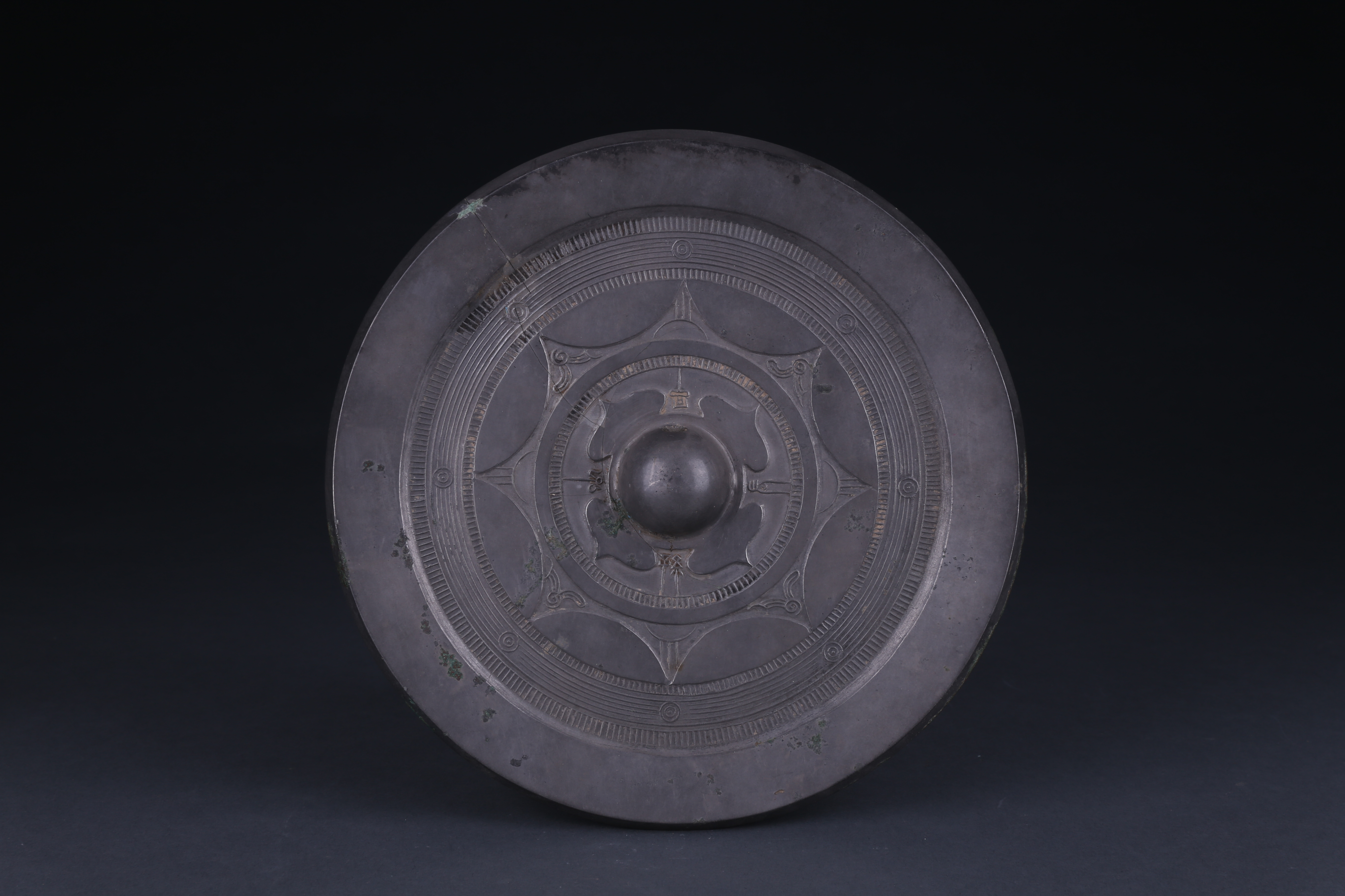 “长宜子孙”四字间隔,凹面连弧八角星纹,外饰数圈弦纹,宽平素缘。